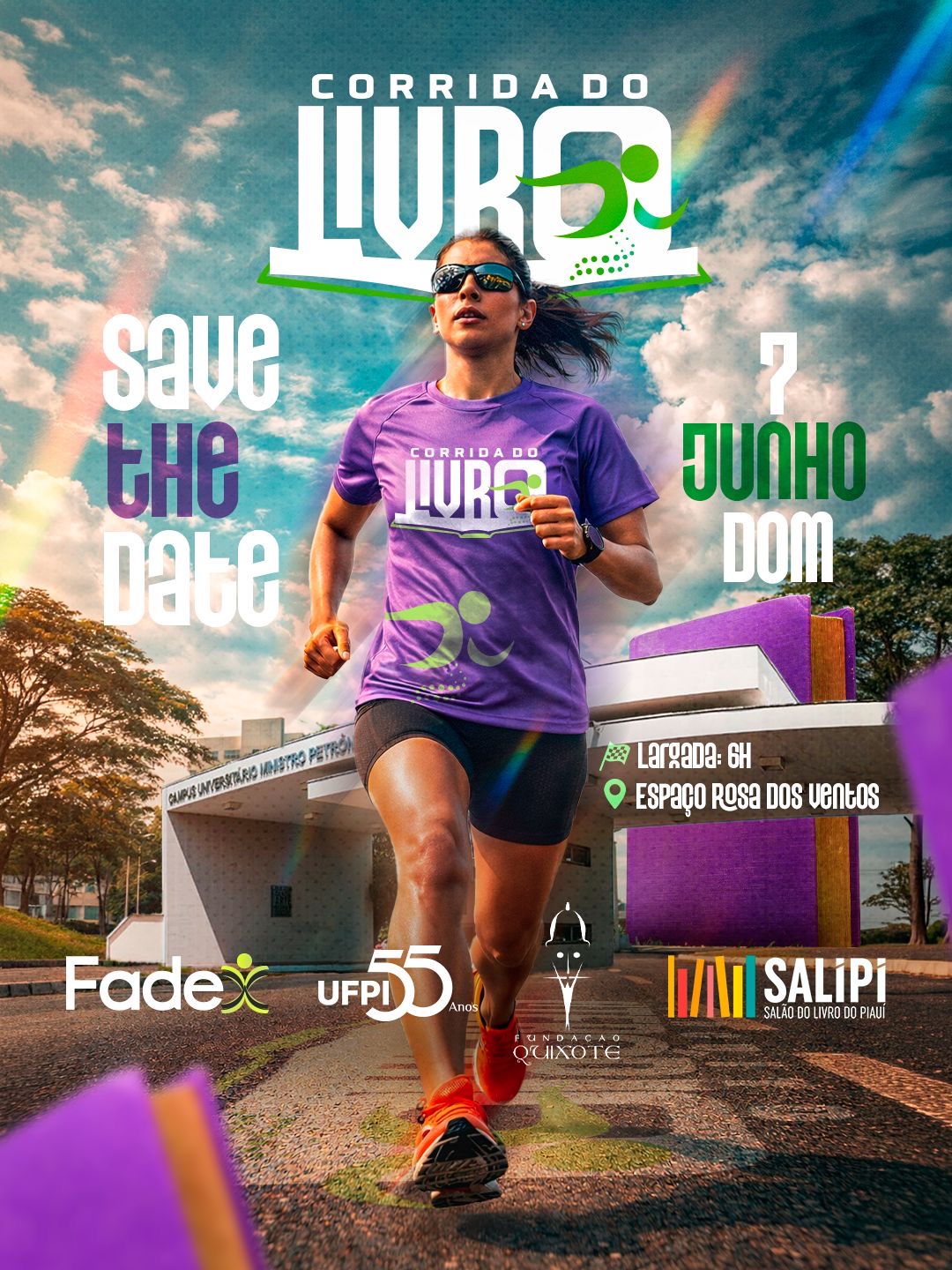 O Salão do Livro do Piauí (SALIPI) chega à sua 24ª edição com uma novidade que promete movimentar o público: a 1ª Corrida do Livro. O evento acontece no dia 7 de junho, com largada marcada para às 6h da manhã, no Espaço Rosa dos Ventos, na UFPI. A competição conta com 18 categorias, entre modalidades masculinas, femininas, caminhada e PCD. A caminha tem percurso de 3 Km, as demais categorias tem seu percurso em 5 Km.